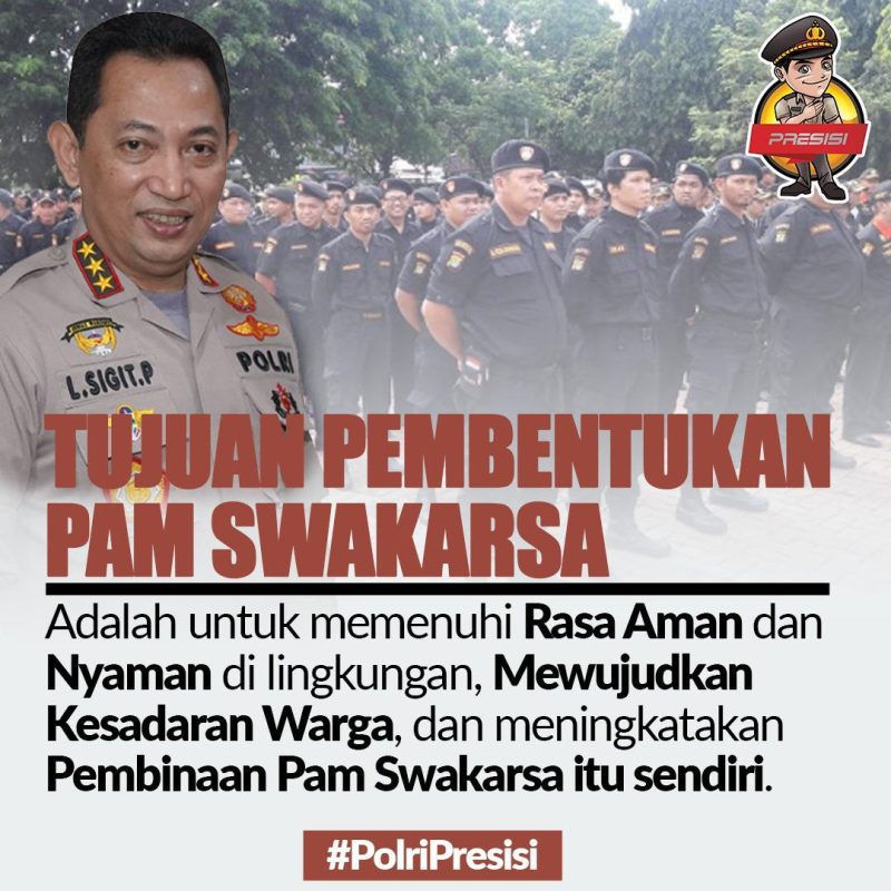 Mengingatkan bahwa untuk mewujudkan keamanan dalam negeri yang meliputi terpeliharanya keamanan dan ketertiban masyarakat, tertib dan tegaknya hukum, terselenggaranya perlindungan, pengayoman, dan pelayanan kepadamasyarakat, perlu melibatkan dan meningkatkan potensi pengamanan swakarsa untuk membantu salah satu tugas Kepolisian Negara Republik Indonesia.