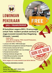 Dibutuhkan segera SPO / Pramuniaga untuk Toko Modern Produk Sanitary di Jogja (Cowok / Cewek) [...]